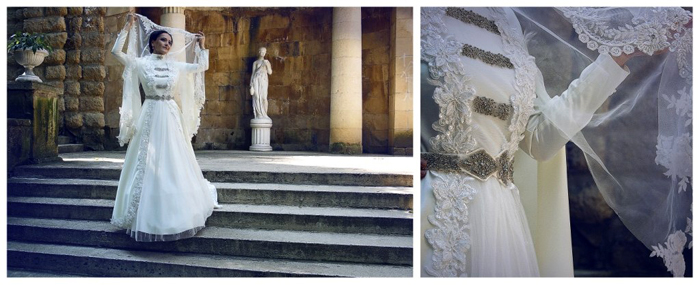 После учебы времени на коллекции не было, но в прошлом году я решила принять участие в Евразийском конкурсе этнического костюма «Этно-Эрато». Это была коллекция в рок стиле, хотелось показать, что карачаево-балкарские орнаменты легко внедрить в любой стиль и использовать любую технику: это были и заклепки, и стальные молнии, и кожа с пайетками, и кружево, в то же время, образы оставались очень женственными.