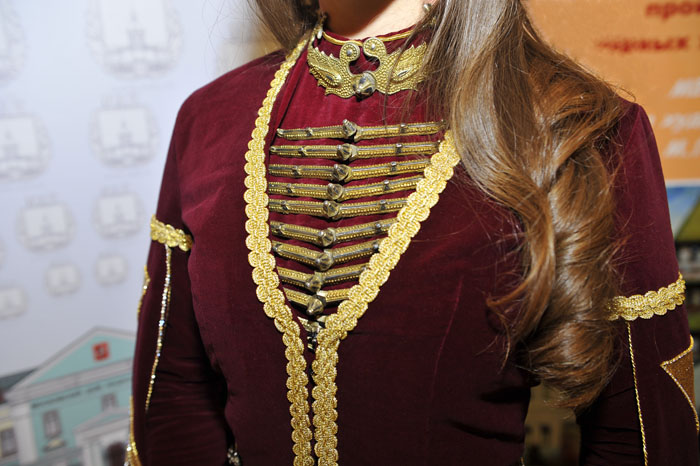 - Редко, в основном это мужские пиджаки и сюртуки с национальными элементами, вышивка, или газырницы, башлыки-шарфы.