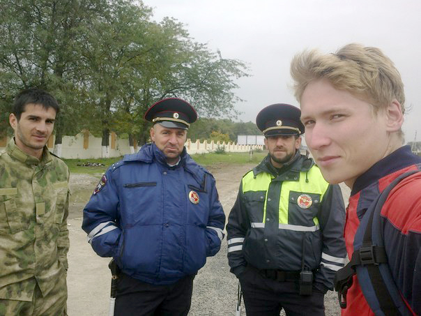 Чечено-ингушские полицейские очень любопытные и вежливые. Стоят на каждом километре трассы, и на каждом останавливают с личным интересом – устал рассказывать одно и то же. Но ничего – на некоторых постах меня даже накормили в кафе, а на въезде в Дагестан дали пять сникерсов.