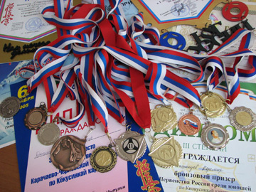 Слова тренера подтверждают и многочисленные дипломы, грамоты, медали, кубки Казимира. Результаты боев Казимира на соревнованиях, - а почти во всех он или побеждает, или занимает призовые места, - говорят сами за себя: 1-е место на Клубном турнире города Карачаевска в возрастной категории 12-13 лет, затем победа на II Открытом Первенстве г. Карачаевска (12-13 лет), 1-е место на Открытом Первенстве Открытого Чемпионата г. Карачаевска "Кубок Домбая" по Кёкусинкай каратэ в возрастной категории14-15 лет, 1 место на первенстве КЧР по Кёкусинкай каратэ среди детей, юношей и юниоров, 1 место на IV Республиканском турнире, 1 место на Открытом Первенстве Южного Федерального округа по Кёкусинкай каратэ среди юношей, 3-е место на Первенстве России в возрастной категории 14-15лет, победа на Первенстве КЧР по Кёкусинкай каратэ, "серебро" I Чемпионата Юга России по Кёкусинкай каратэ-до, 2-е место в I Открытом турнире г. Краснодара. И это далеко не все победы Казимира. Совсем недавно он перешел в возрастную группу 16-17 лет и на прошедшем в мае в г. Пятигорске Открытом Первенстве Юга России по Кёкусинкай каратэ в весовой категории до 70 кг. стал опять победителем.