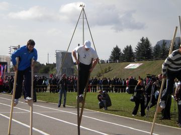 "Что-то вроде Олимпийский игр" состоялось на минувшей неделе и в ауле Хабез. Открылись соревнования с бега на ходулях. Эта старинная забава у горцев давно не в моде, и многие легкоатлеты впервые встали на деревянные шесты только на "Кавказских играх". Впрочем, в новинку для спортсменов и зрителей были не только "ходульные" состязания.