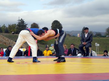 Но больше всего зрителей собрала, пожалуй, борьба на поясах. Единоборства у кавказцев входят в число национальных видов спорта, которые всегда были в большом почете. Даже милиционеры, следившие за порядком на играх, интересовались у коллег: "Что там, борьба не началась еще?"