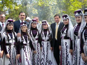 Во всех "регионах СКФО" побывал в этот день и Александр Хлопонин, а также главы северокавказских республик и Ставрополья. Их встречали стройные горянки в платьях до пят, румяные казачки, статные старики с окладистыми бородами, и все - с музыкой, танцами, песнями. Полпред с интересом рассматривал экспозиции, задавал вопросы, удивлялся, любовался и не отказывался от угощений. Ставропольцы встретили Vip-гостей горилкой и домашними пирожками, дагестанцы угостили даргинским пирогом чуду, кабардинцы - шашлыком из сушеного мяса, ингуши прямо из кипящего котла разлили по чашам бульон...