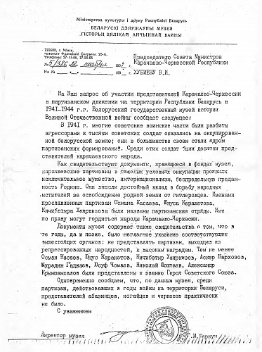 "Всюду агенты партизан. Особенно много их в Могилеве… В Хриплеве, Угольщине, Песчанке и в других районах западнее Могилева обосновался 121 краснопартизанский полк, о котором мы ранее доносили. Полком командует некий кавказец Осман - коварный, опытный в военном деле, большевистский комиссар. В сущности мы контролируем только районные центры, а в селах укрепились партизаны… Против них необходимы крупные силы…"