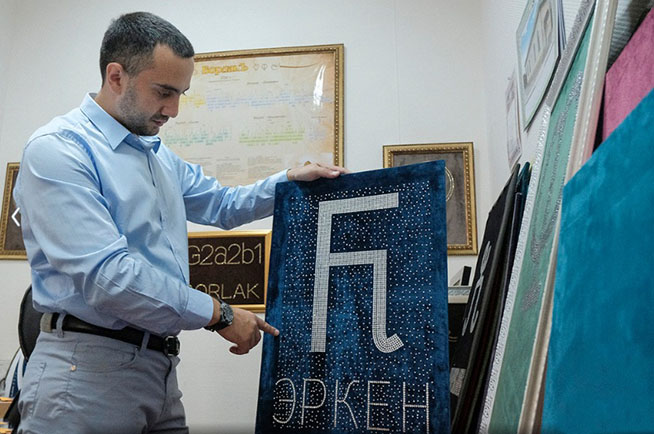 На Ставрополье моду на тамгу ввел Эльбрус Борлаков — он делает картины-панно из стразов на бархате.