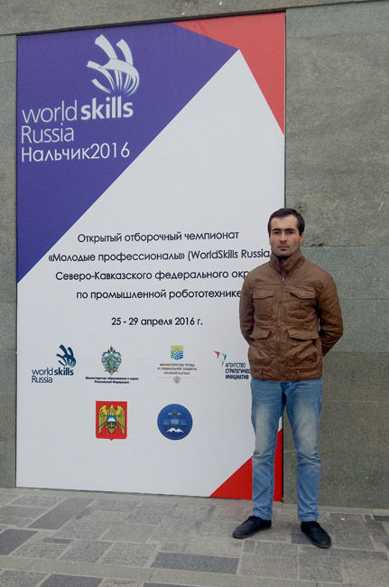 – Когда преподаватель кафедры физики Лайпанов Мурат выбрал меня для участия в этом конкурсе, я был против, потому что мой профиль информатика и вычислительная техника, а промышленных роботов я только по телевизору видел. Но он переубедил меня, сказав, что раз нас пригласили на участие, то мы обязаны поехать и хотя бы присутствовать там. Нам было представлено 3 промышленных робота по сборке деталей. В условия конкурса входило создание программы на языке информатики, который, кстати, мы не изучали. Нам дали немного времени ознакомиться с роботом, посмотреть, потрогать, увидеть его в движении. На свое удивление я быстро вычислил принцип работы. Это была простая геометрия, в которой алгоритм действий состоит из заданных точек, то есть движение по вектору. В общем, я тут же увлекся заданием и, выполнив его, занял в конкурсе 3-е место. 1-е место уже изначально принадлежало самому сотруднику научной лаборатории, а 2-е место забрал русский парень из Осетии, опередивший меня на 1 балл, потому что перед запуском программы соблюл технику безопасности, то есть проверил вентиль. Ему повезло больше, так как он уже был раньше знаком с работой такого рода роботов. В любом случае, мы с Муратом не ожидали, что вообще получим призовое место. Эх, вот бы и в нашем университете была подобная лаборатория!
