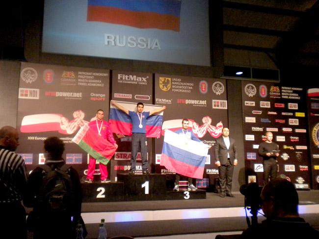 На чемпионате Европы по армрестлингу, Польша, 2012 год