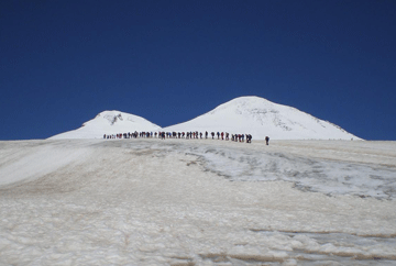 10 лет назад было совершено массовое восхождение на Эльбрус командой Фонда "Эльбрусоид". Восходителей было более 70 человек, их которых 57 удалось оказаться на вершине горы Эльбрус 9 августа 2008 года. Отрадно отметить, что среди достигших вершины было 5 девушек. Также среди участников было несколько представителей братского кумыкского народа.